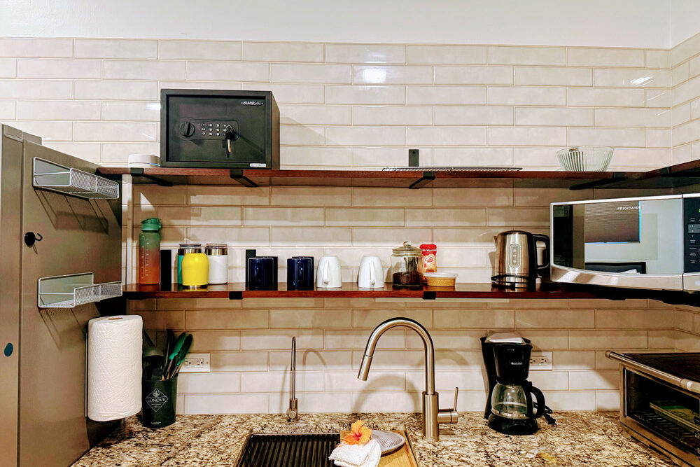 Enjoy the convenience of complimentary in-room coffee, a kitchenette (with a full-sized refrigerator, microwave, and stovetop), complimentary Wi-Fi and a Smart TV. Complete with air conditioning, an in-room safe, and even free laundry services, this 1st floor studio ensures your comfort and security.